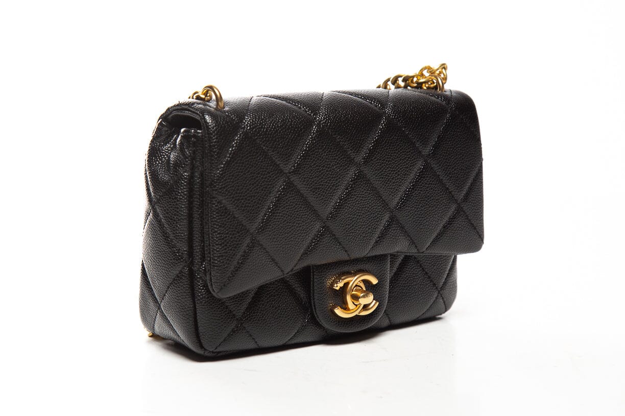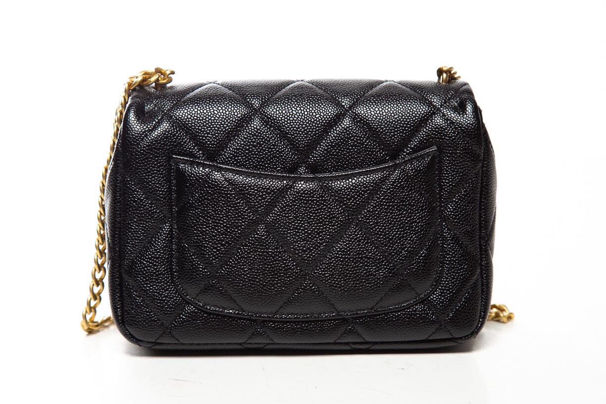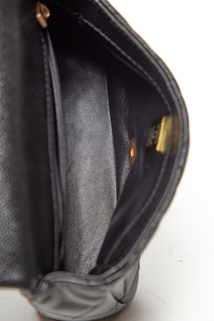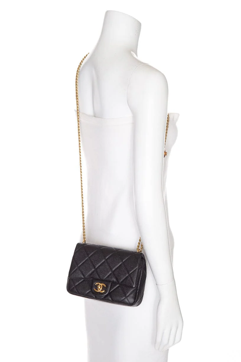 Chanel Black Caviar Leather Quilted Sweetheart Mini Flap Handbag. This item is in very good condition.
